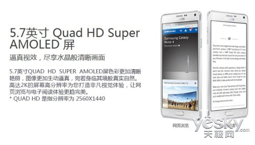 三星GALAXY Note家族一向是不少商務人士首選機型,最新的GALAXY Note 4傳承了Galaxy系列的出色移動體驗。在集成上一代5.7英寸大屏的基礎上,引入2K超高清分辨率可呈現出更清晰、更生動、對比度更強的圖像,為用戶帶來更加極致的視覺和操控體驗。
