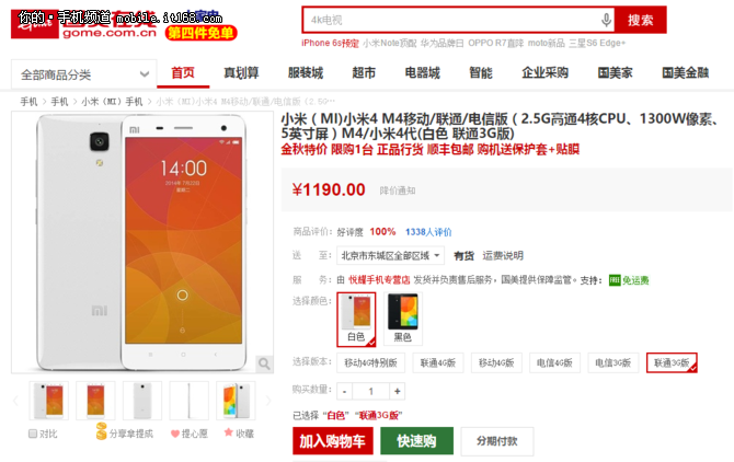 比小米4c更優(yōu)惠 小米4清倉(cāng)價(jià)1190元