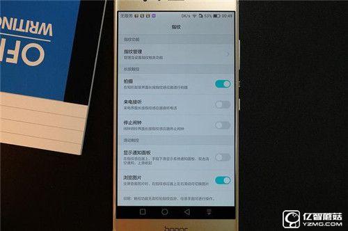屏幕方面,我手中這款榮耀V8為高配版,采用了2K屏,PPI高達515,可以說再也看不到任何顆粒感。在發布會上了解到,榮耀V8花大力氣在屏幕調色上 用功,采用了專業護眼模式,由國家眼科診斷與治療工程技術研究中心(簡稱國家眼科工程中心)提供技術指導,從320組數據中選擇最好的護眼曲線,通過減少 屏幕藍光輻射、調整亮度和色溫預防用眼疲勞。另外,手機還能支持2048級的背光調節令人驚嘆。一般智能手機的屏幕背光調節是以10級為檔位來調,每一級 之間調節的跳躍性很大;2048級的調節,是把離散的感覺連貫起來,顯示更通透,背光調節不再跳躍。