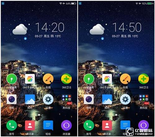 360手機(jī)N4充電測試:左圖為充電前,右圖為充電30分鐘后