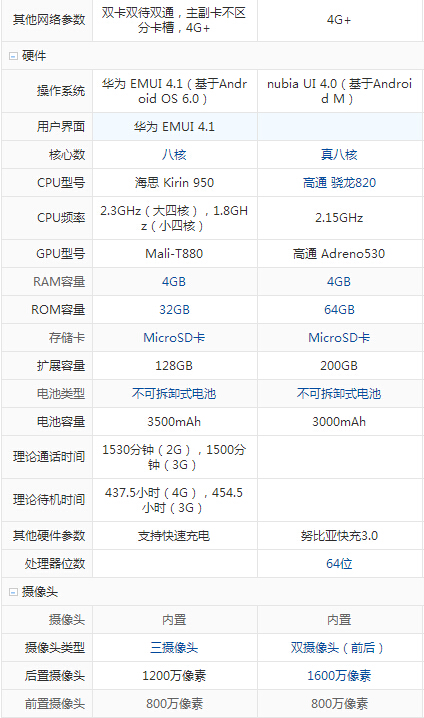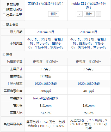 努比亞 Z11和榮耀V8配置參數詳細對比: