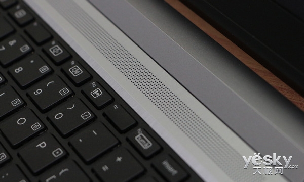 該機電源鍵位于C面左上角,遠離鍵盤避免用戶使用過程中誤觸,開機后電源鍵上白色指示燈會被點亮。與電源鍵相對,在該機C面右上角還有兩枚相對較小的銀色按鍵,分別為WiFi控制和一鍵靜音,簡潔實用。