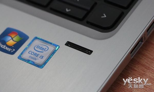 該機C面除了鍵盤區域外表面均采用了金屬拉絲工藝,再一次提升了產品質感。在左側掌托處印有一枚ProBook logo,在右側則為Windows和Intel logo。值得一提的是,為了進一步保證商務用戶的數據隱私安全,HP ProBook 430 G3配備了一枚指紋識別,提升了產品安全感。
