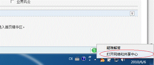 1.1 在系統托盤的【網絡】圖標上單擊,選擇【打開網絡和共享中心】,如下圖: