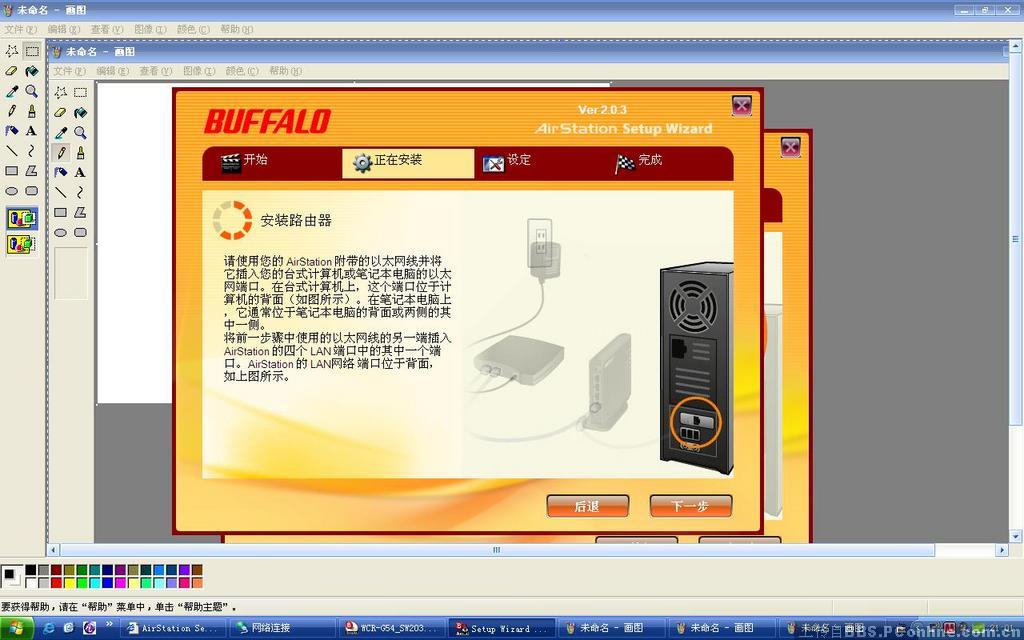 用另外一根網線(準備好網線)將BUFFLAO無線路由的LAN口與電腦的網口連接。